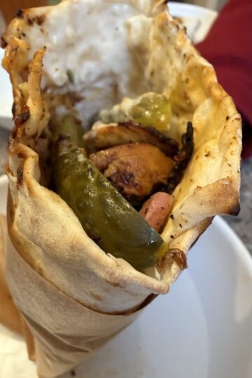 Recipe adapted from Every Little Crumb. Ingredients: Chicken: White Sauce: Rice: Serve: Greek Salad – 1 sliced mini cucumber, halved cherry tomatoes, red pepper chunks, thinly sliced red onion, chopped parsley, salt to taste, oregano to taste, olive oil to taste, and red wine vinegar to taste. Directions: