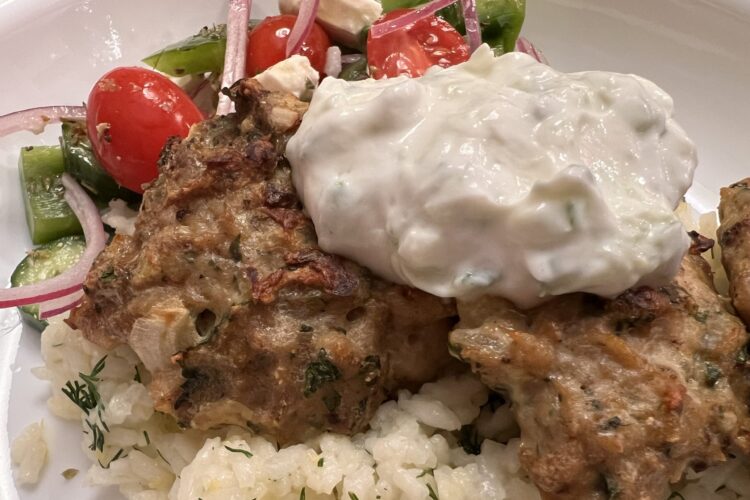 Chicken Kofta with Tzatziki and Lemon Dill Rice