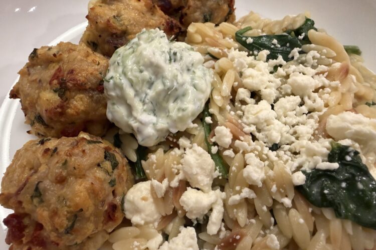 Greek Chicken Meatballs and Lemony Spinach Orzo