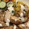 • Tzatziki: Grate cucumber and place in a clean dish towel; fold up the sides of the dish towel and over the sink twist the towel to squeeze the liquid out of the cucumber. Add tzatziki ingredients to a bowl and mix to combine. Chill for at least 15 minutes or until ready to serve.